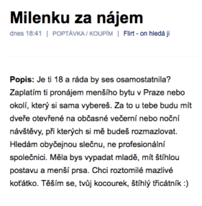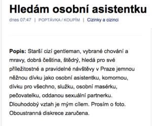 Pokud ti nevadí pracovat zadarmo, nechat se urážet a máš zkušenost s osobní asistencí, zkus odpovědět na jakýkoli inzerát, který najdeš na jakékoli seznamce.